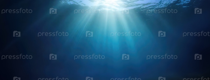 Подводный Мечтательный пейзаж с солнечным светом, проникающим в глубины. Спокойный и потусторонний подводный фон. Панорама с копировальным пространством