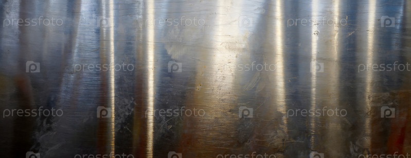 Полированная металлическая поверхность, освещенная окружающим светом, создает мягкий градиент отражения. гладкий и чистый аспект обработанного металла. Гладная поверхность или фон. Панорама с копировальным пространством