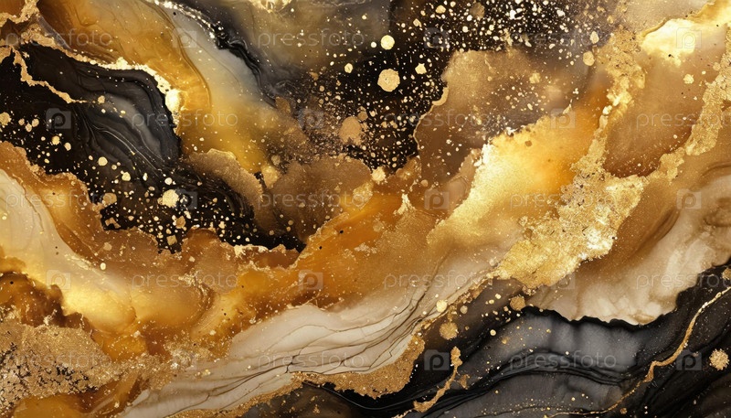 Абстрактная текстура из золота и черного мрамора с блестящими узорами и сложными деталями создает роскошную эстетику