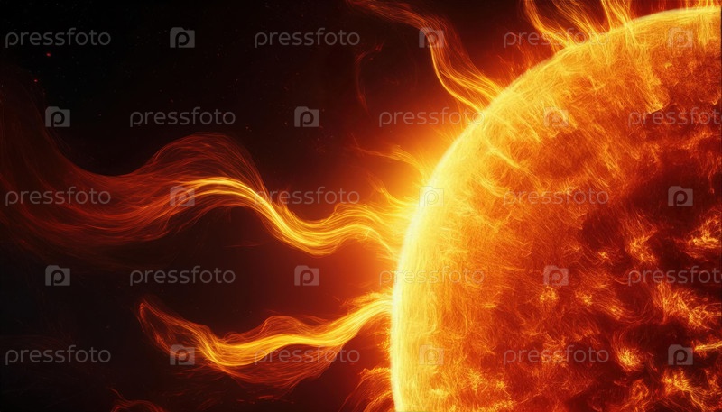 Яркие солнечные вспышки, исходящие от Солнца, создают динамичный и интенсивный астрономический вид