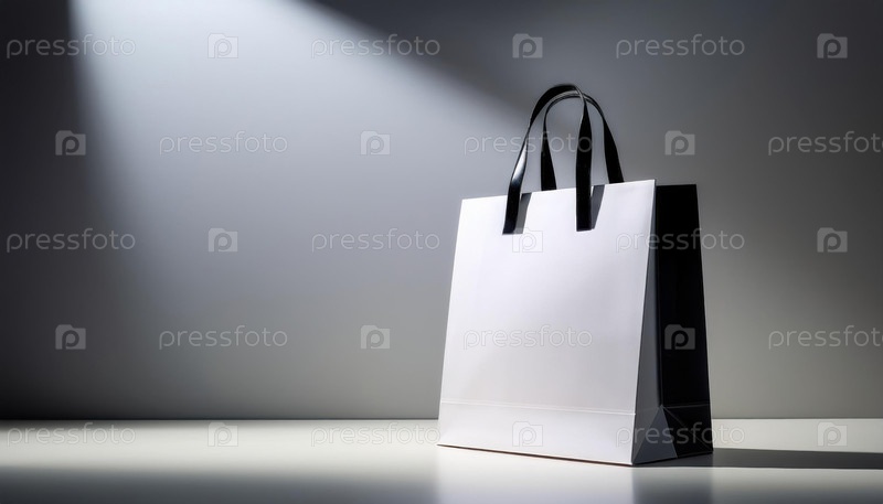 Минималистская стильная черно-белая сумка для покупок под драматическим освещением на нейтральной поверхности