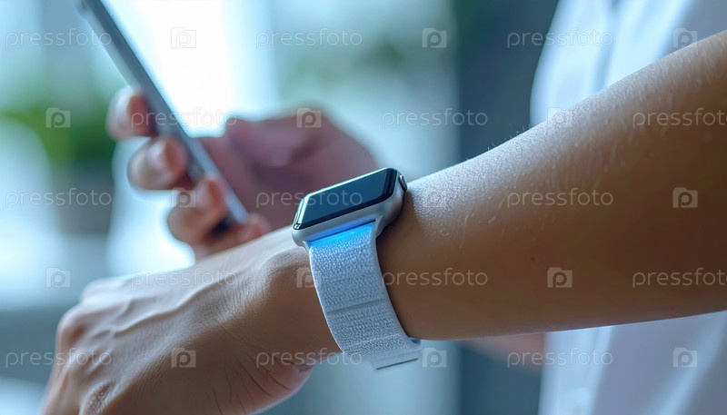 Ближайший снимок наручных умных часов с светящимся ремнем, иллюстрирующий сочетание отслеживания здоровья и подключения в современной жизни