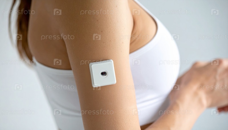 Закрытие интеллектуального носимого датчика на руке женщины показывает технологию отслеживания здоровья в режиме реального времени и биологическую обратную связь в сегодняшних личных системах здравоохранения