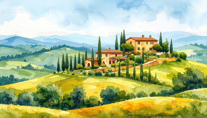 Солнечная тосканская вилла, окруженная холмами и кипарисами, представляет собой романтические сельские побеги, агротуризм и идиллический европейский образ жизни