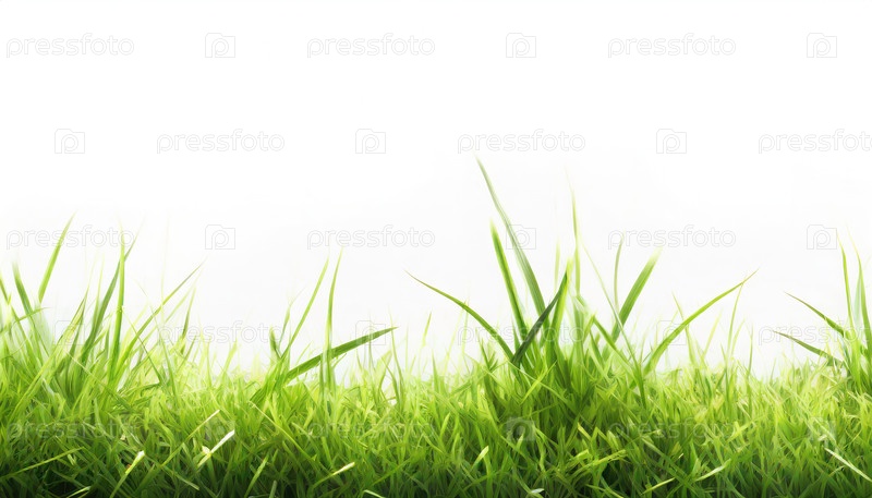 Минималистское изображение свежей зеленой травы, растущей на белом фоне, обеспечивающей естественную текстуру и пространство для копирования