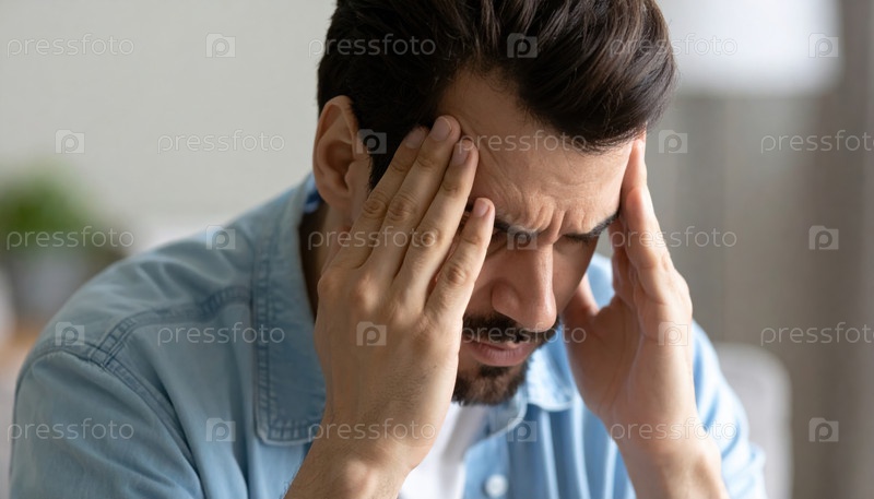 Стресс и разочарование, продемонстрированные человеком, удерживающим голову в бедствии, представляют собой эмоциональное или финансовое давление