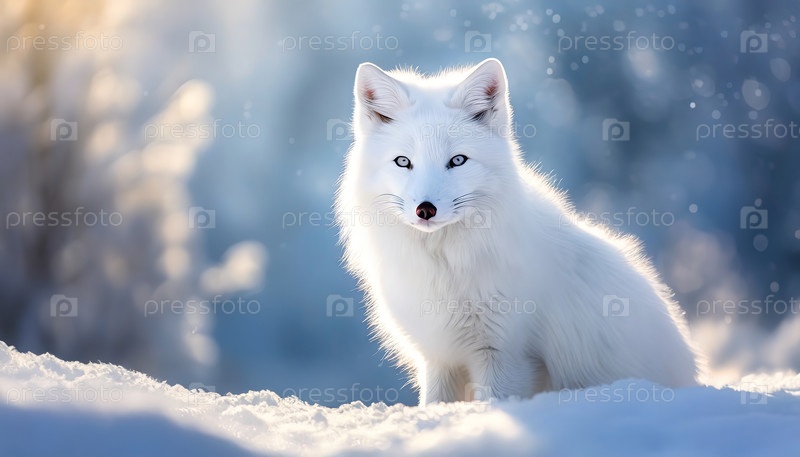 Белая арктическая лиса в снежном ландшафте, символизирующая чистоту и пустыню