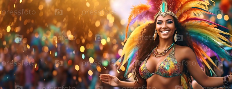 Праздничная атмосфера пульсирует, когда исполнительница танцует в перьях, ее сияющая улыбка воплощает суть праздника и культуры