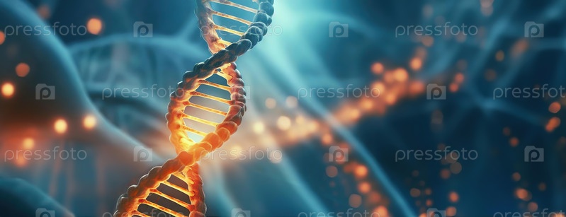 Близкий взгляд на структуру двойной спирали ДНК со светящимися элементами, что является генетическим исследованием