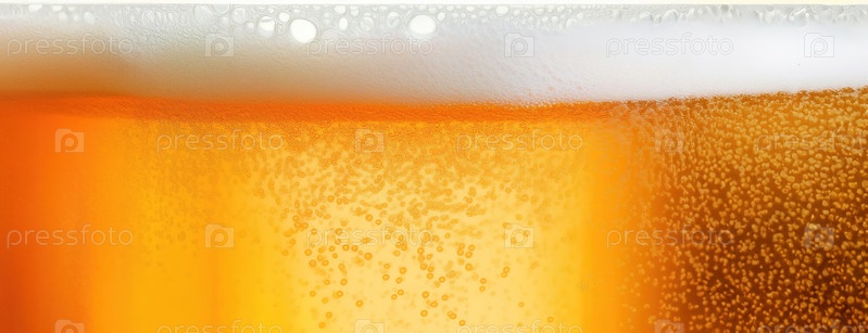 Поворачивание пива в стакане с пузырями, поднимающимися и пенистыми на вершине, показывающие детали освежающего холодного напитка