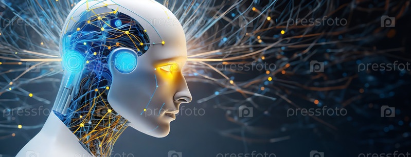 Футуристическое изображение головы робота с нейронными соединениями