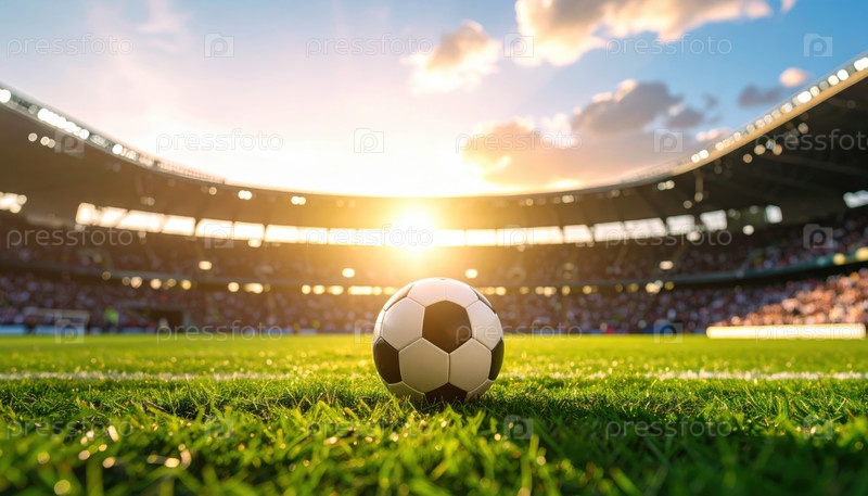 Футбольный стадион 'Закат солнца' захватывает энергию спорта, волнение болельщиков, глобальные турниры и дух командной работы и конкуренции