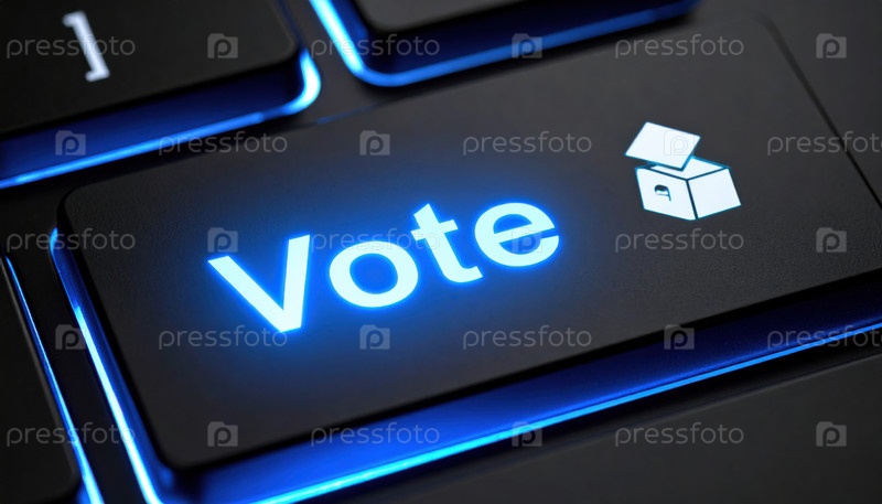 Завершение светящейся кнопки голосования на клавиатуре, символизирующей цифровую демократию и онлайн-выборы