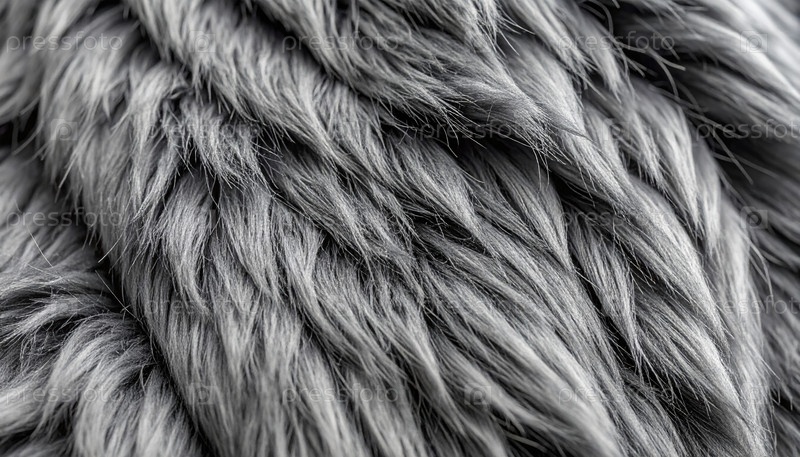 Близкая текстура мягкого серого меха, используемого для роскошной ткани, моды или уютного дизайна интерьера, подчеркивая качество материала и тактильную эстетику