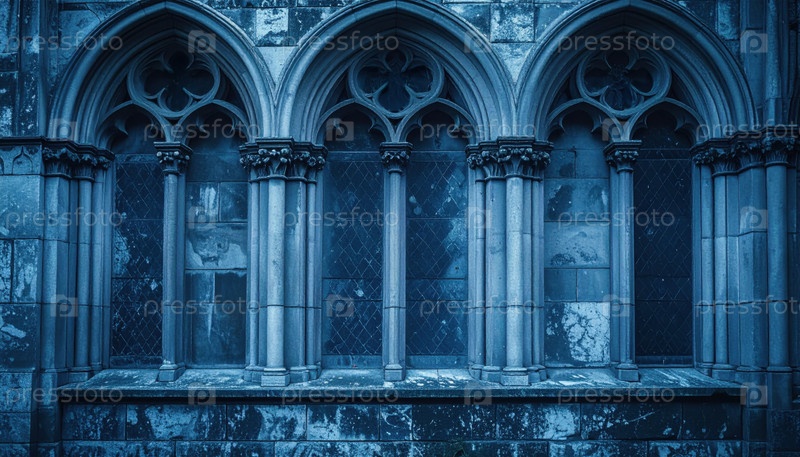 Экстерьер старой выветрившейся готической стены здания с арочными окнами, показывающими очарование и текстуру исторической архитектуры