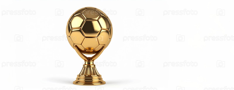 Золотой трофей в виде футбольного мяча, представляющий достижения, соревнования и спортивность на международных футбольных мероприятиях и молодежных турнирах