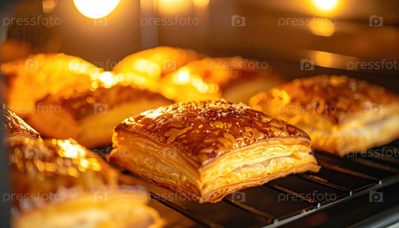 Выпечка золотисто-коричневых пирожных в духовке, представляющих тенденции ремесленной выпечки и возрождение домашнего и пекарского мастерства в современной кулинарной культуре