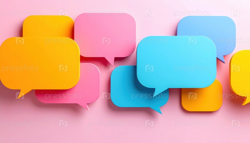 Красочные пузыри речи на пастельном фоне, представляющие коммуникацию, диалог, социальные сети и современные тенденции обмена сообщениями