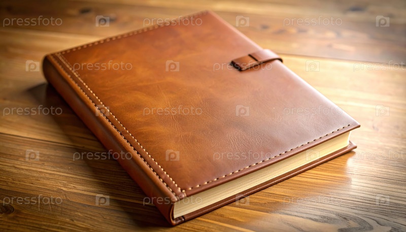 Закрытый кожаный журнал на деревянном столе, вызывающий темы памяти, личные истории или нераскрытые секреты, ожидающие написания