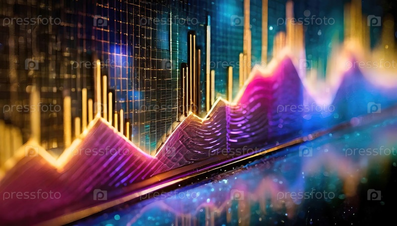 Абстрактная красочная визуализация данных с светящимися линиями графиков и графов