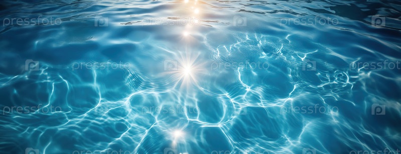 Качающаяся голубая поверхность воды отражает солнечный свет с естественными волновыми рисунками на открытом воздухе в течение дня