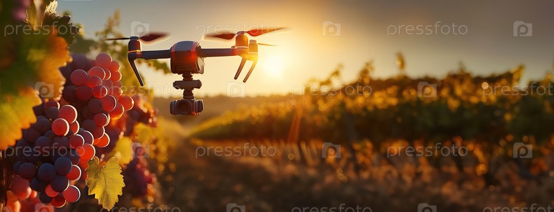 Беспилотный летающий над виноградником захватывает воздушные кадры зрелых виноград, готовых к сбору урожая