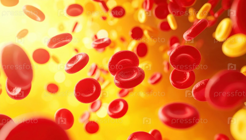 Закрытие красных кровяных клеток, суспендированных в плазме при высоком увеличении, иллюстрирующее атеросклероз и различные сосудистые заболевания