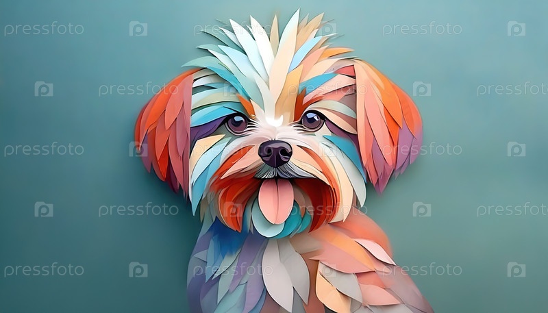 Красочная иллюстрация собаки в стиле бумажной резки со слойными текстурами, передающая игривость, творчество и очарование художественных портретов домашних животных