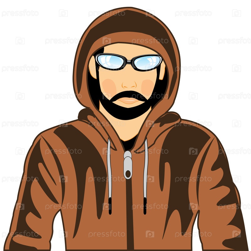 Портрет мужчин в капюшоне на белом фоне изолирован