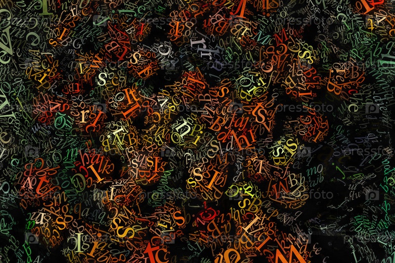 Красочные буквы английского алфавита на черном фоне, плавный рисунок