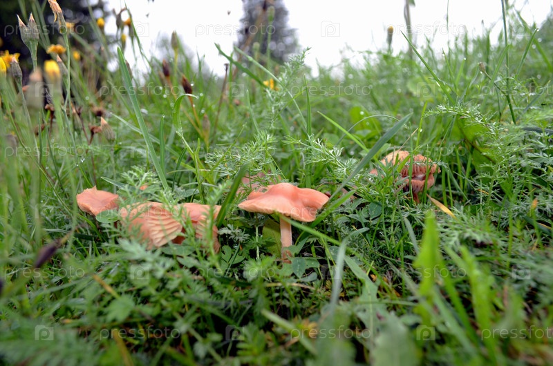 Грибы росли на поляне после теплого дождя