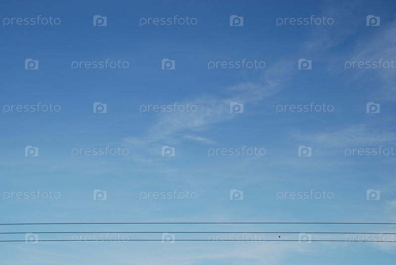 Белые пушистые облака и три провода против неба