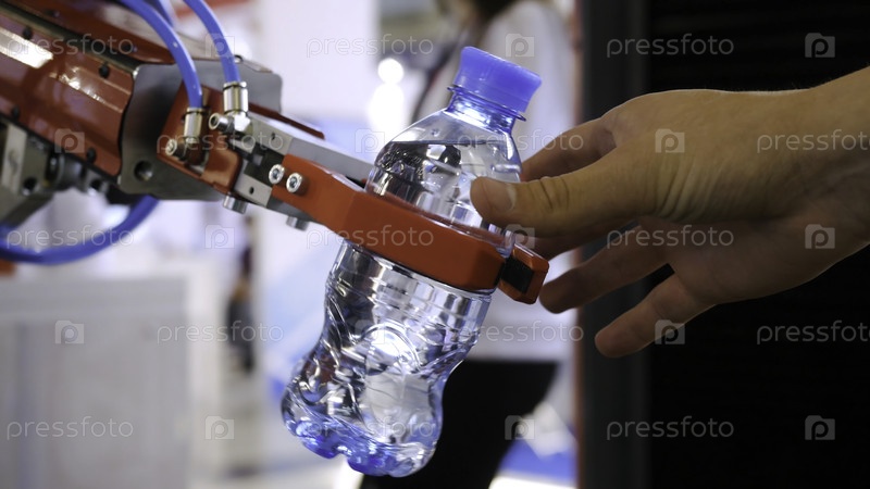 Рука робота держит бутылку с водой Технологический прогресс