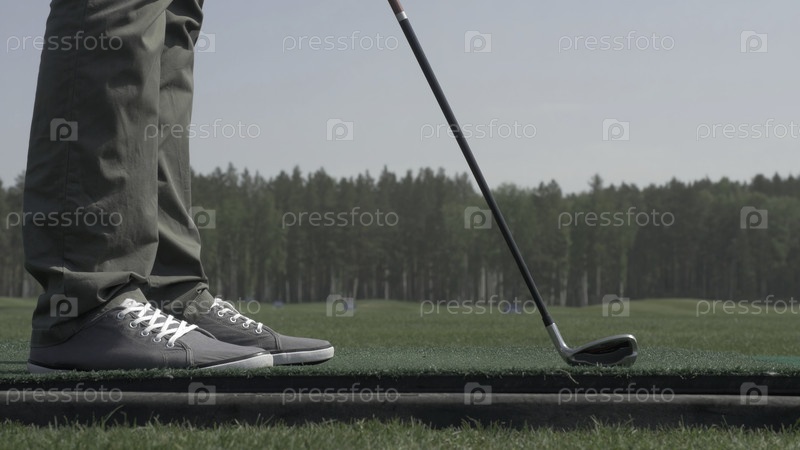 Игрок в гольф играет мячом на красивом поле для гольфа.Игрок стреляет по феерваю к клубу.Мужчина на поле для гольфа под солнцем.Профессиональный игрок