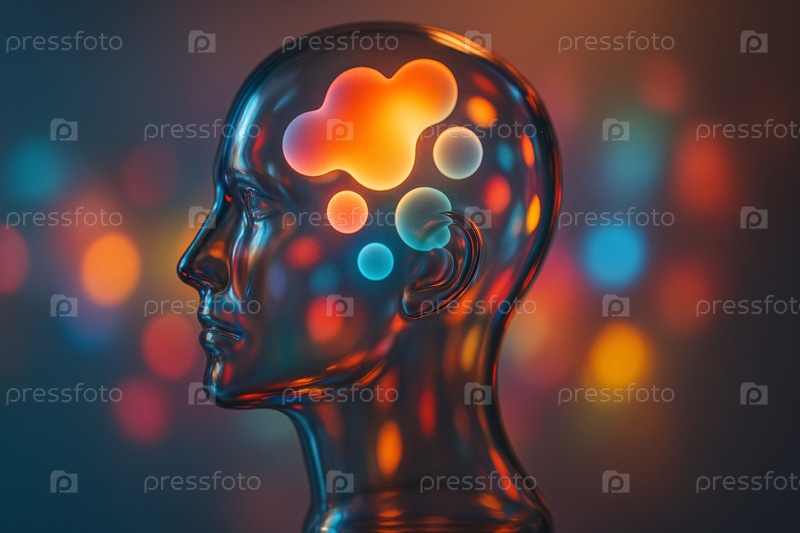Прозрачная голова с абстрактной структурой искусственного интеллекта