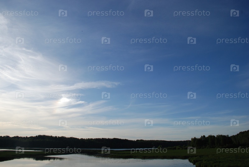 Закат над лесом и озером