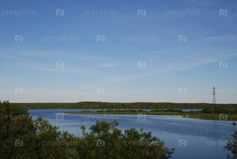 Закат над лесом и озером