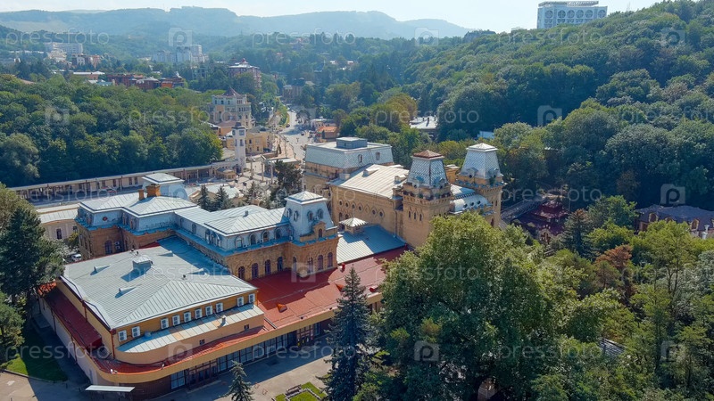 Кисловодск, Россия - 30 августа 2021 года: Государственная филармония имени В.И. Сафоновой, Aerial View
