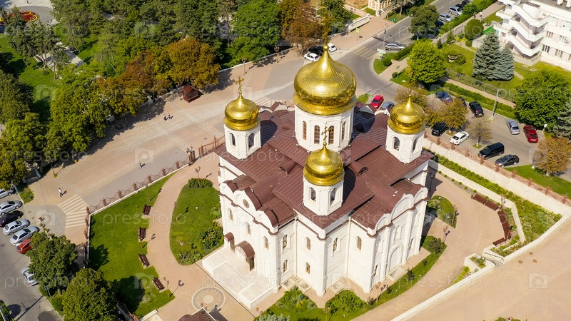 Собор Христа Спасителя, исцеляющий хромых под руководством Овечкина - Пиатигорский собор, вид с воздуха