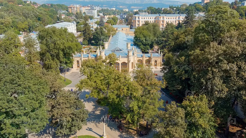 Нарзанская галерея - архитектурный памятник XIX века, расположенный в курортном парке города Кисловодск, Aerial View