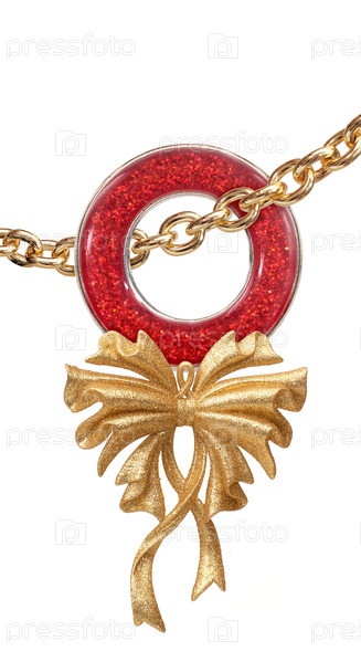 Рождественская игрушка в форме золотого круга, изолированного на белом фоне