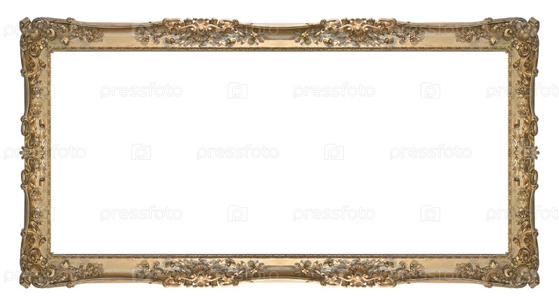 Панорамная золотая рама для картин, зеркал или фотографий, изолированных на белом фоне