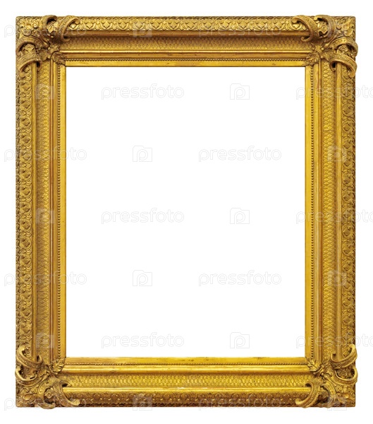 Золотая рама для картин, зеркал или фотографий, изолированных на белом фоне
