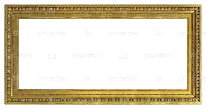 Панорамная золотая рама для картин, зеркал или фотографий, изолированных на белом фоне