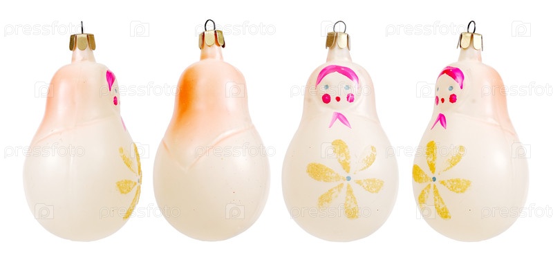 Стеклянная рождественская игрушечная кукла для гнездования, изолированная на белом фоне