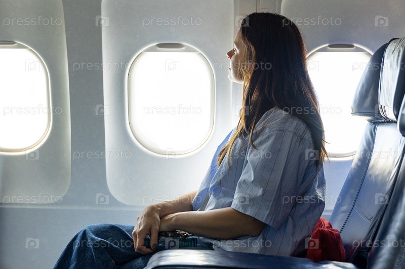 Армения. Ереван. Пассажир бизнес-класса в салоне самолета. Армения. Ереван. Бумага делового класса в кабине самолёта