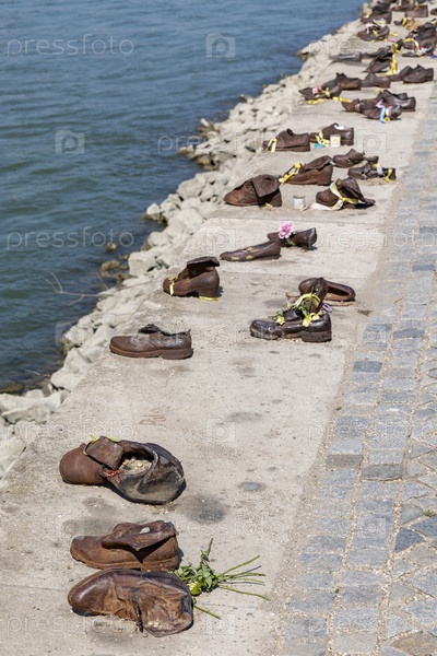 Венгрия. Будапешт. Я жертвую Холокостом. Венгрия. Обувь на набережной Дуная - мемориал жертвам Холокоста