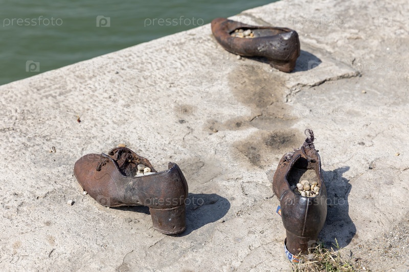 Венгрия. Будапешт. Я жертвую Холокостом. Венгрия. Обувь на набережной Дуная - мемориал жертвам Холокоста
