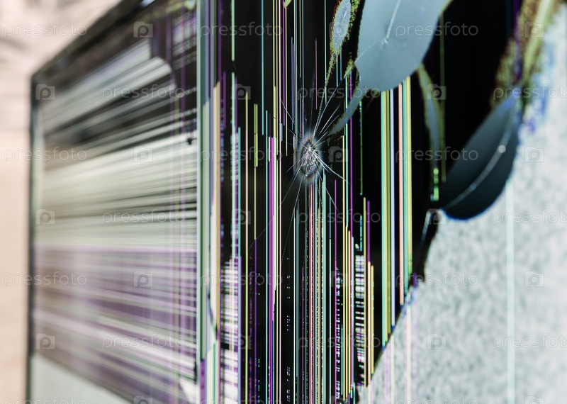 Сломанный экран монитора, ремонт телевизора, аналоговый шум