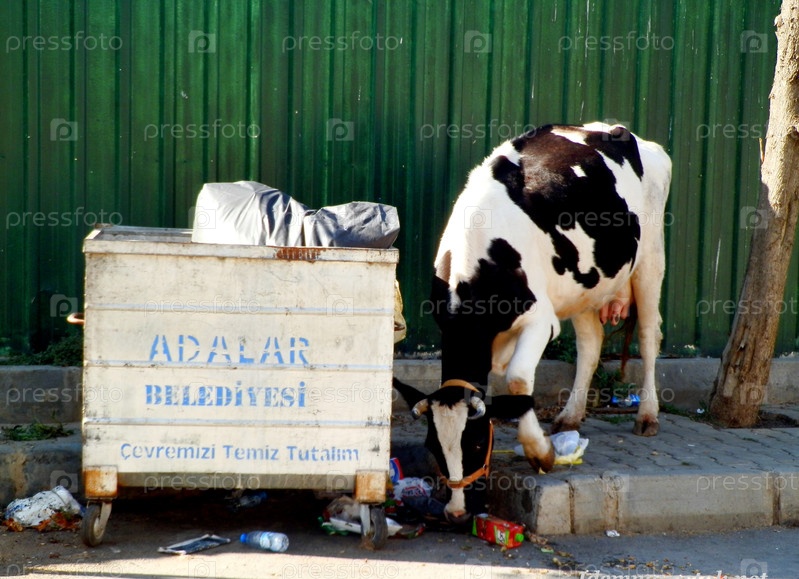 Корова ищет пищу
